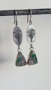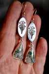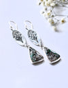 Bezel-set maligano jasper cabochons hang from beautifully etched silver snowdrops.  The earrings come with handmade french style ear wires.