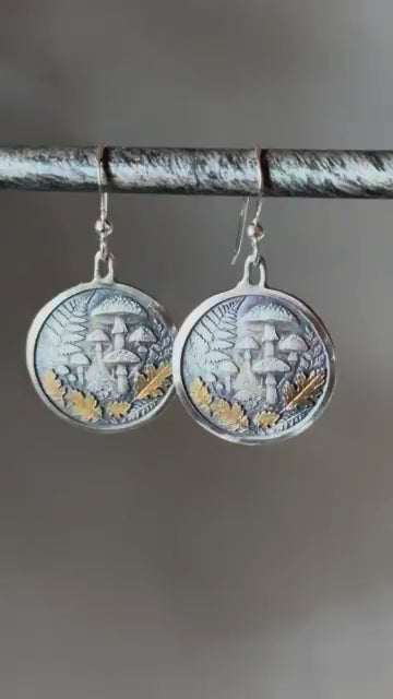 Carry the calm of the forest with you. These sterling silver earrings feature etched mushrooms, ferns, and gilded leaves — a tiny woodland scene brought to life in metal. Inspired by the quiet magic of forest walks, they’re a perfect reminder of nature’s daily therapy