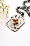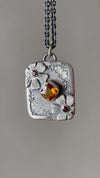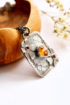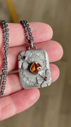 Forest Light Keepsake Necklace - Citrine Pendant in Silver with Floral Details
