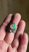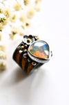Every element is shaped and placed by hand, so no two are ever exactly the same. It’s a solid, statement sterling silver ring with Ethiopian opal, made for everyday wear but special enough to feel like a small treasure on your finger.