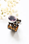 Each ring is individually handcrafted, so the textures and gold markings will always be unique. A statement sterling silver and lavender chalcedony ring with gold details, made for anyone drawn to organic shapes, floral touches, and the beauty of contrast.