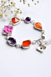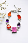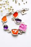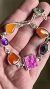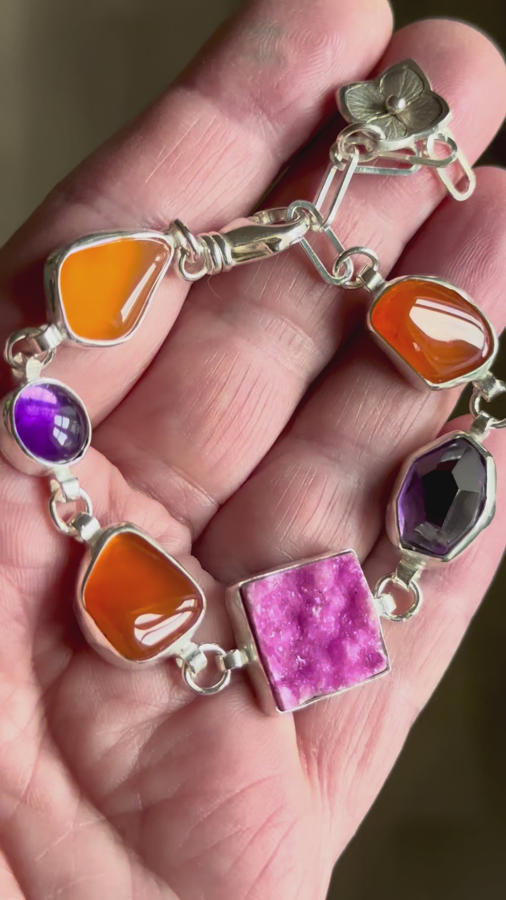Carnelian, Amethyst & Cobalto Calcite Druzy Silver Bracelet