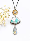 One of a Kind Celestial Necklace with Plume Agate Cloud and Rainbow Moonstone