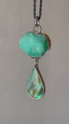 Beautiful serene stones such as Peruvian opal and raw polished Australian chrysoprase are paired in sterling silver.